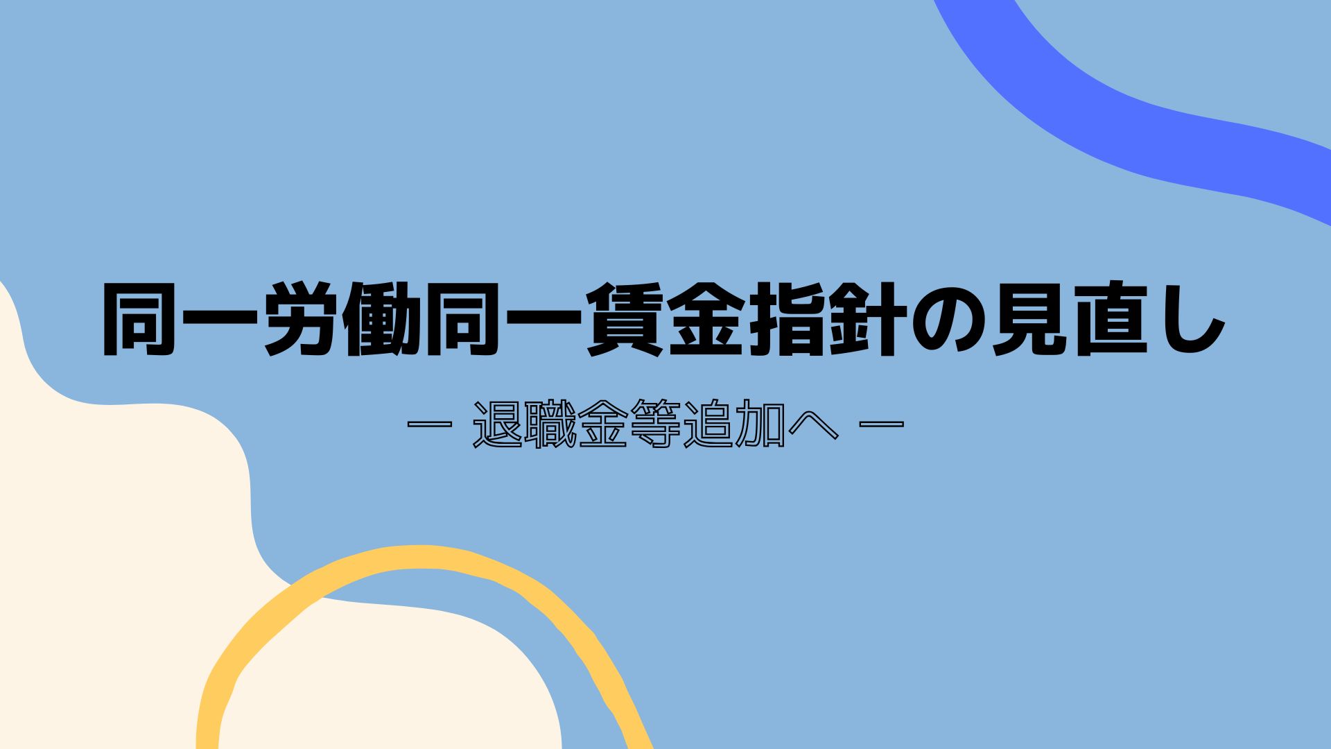 同一労働同一賃金指針、退職金・住宅手当等を追加へ!